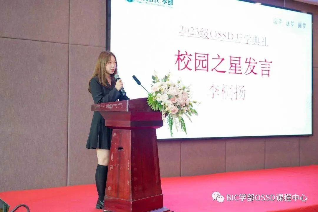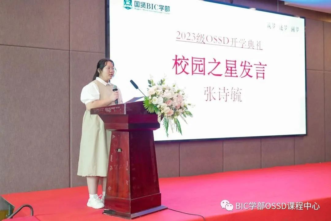 新生代表诗毓同学进行了发言,讲述了自己来到北京市丰台区怡海中学BIC学部的原因、对新学期的期望及对同学们的祝福
