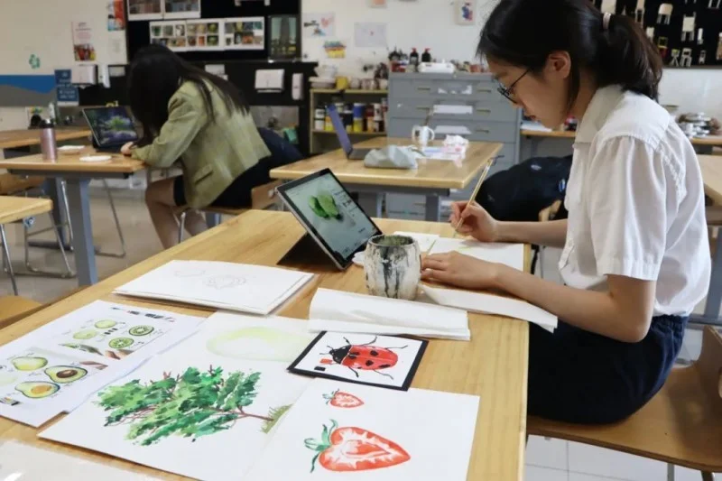 她也不是开局都天赋值点满,但却会在不甘中鞭策自己成长。为了挑战自己,看看自己在艺术方面究竟行不行,丁同学报名了水彩的课外拓展课。一次勇敢的尝试得到了照亮人生的评价。“有个正在画水彩的老师对我说,我对色彩的掌握感受特别好。当时我就觉得,每个人不必着急为自己贴标签。比如我艺术不好,我就不做尝试了。其实你都可以去试试,说不定你在这些方面也有一些小天赋。”