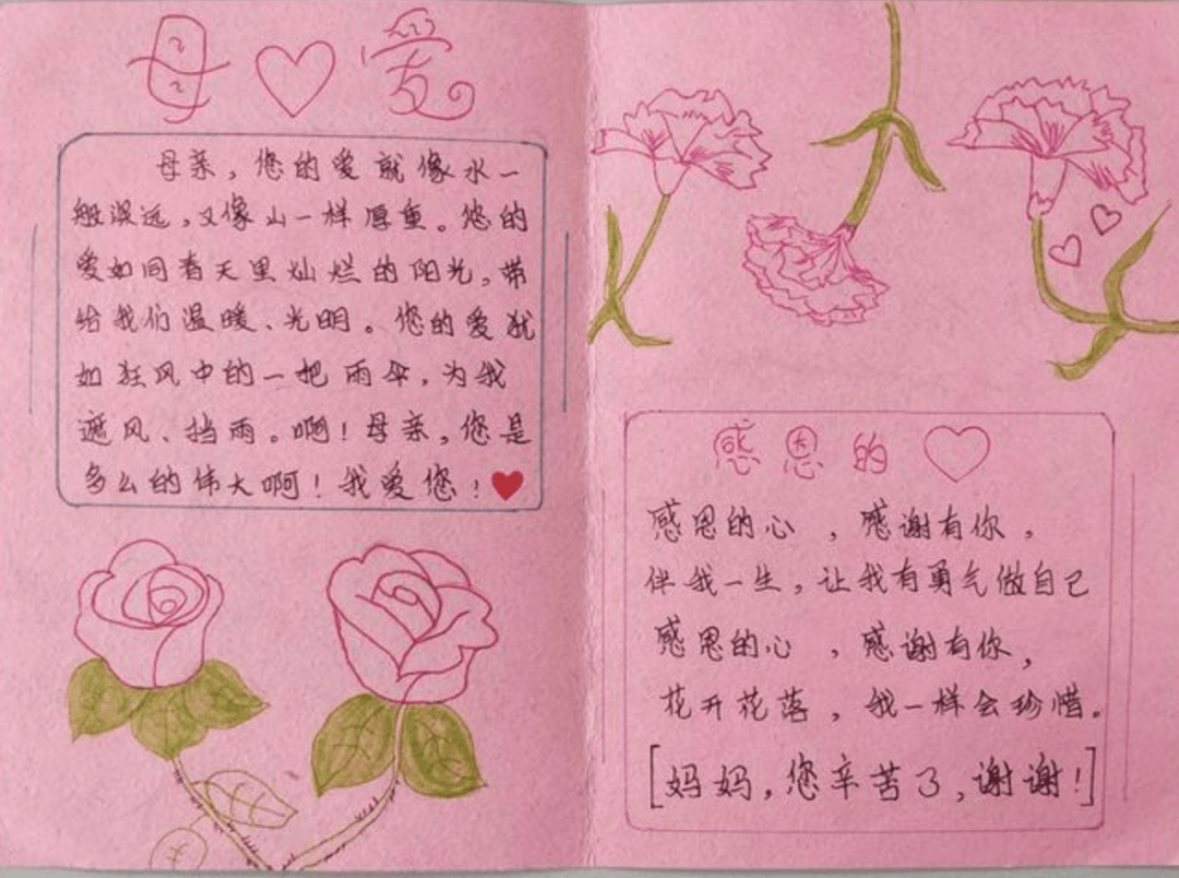 在母亲的耳边轻轻地道一声“妈妈,我爱您”;认真书写,用端正的方块字,将最亲切最真诚的感谢及祝福向母亲表达。