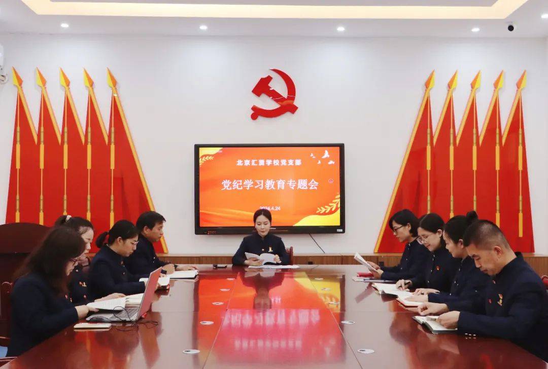 4月24日,汇贤学校党支部开展了第一次党纪学习教育集中学习专题会,党员同志带着昌平区委教育工委下发的《中国共产党纪律处分条例》,在党建室进行集体学习。