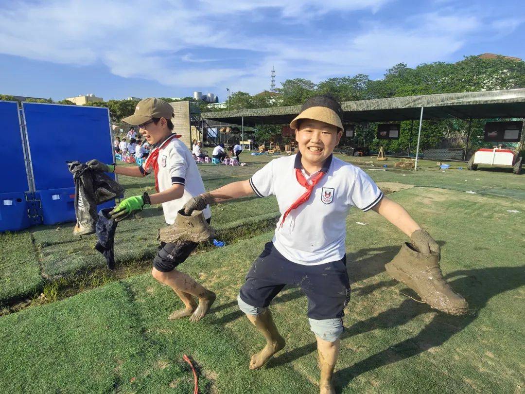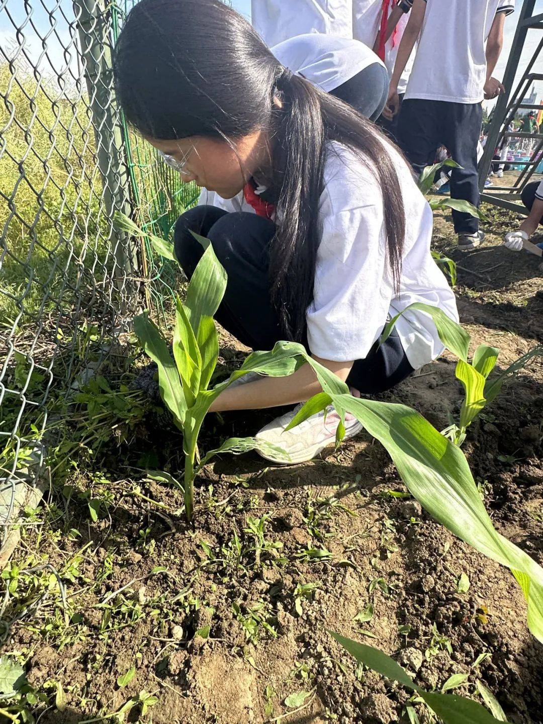 第一天下午的田间劳作包括锄草、翻地、开渠、插秧等。在听取了教官耐心细致的理论讲解后,同学们挽起衣裤,走向田间,杂草丛生的玉米田被一双双小手打理得生机勃勃;手脚协力,挥动铁锹,虽显吃力,却井然有序,同学们将沟渠挖得整齐有序。田里的泥水溅到衣服和脸上,但无法改变孩子们插秧时的专注。晚饭时,孩子们谁也不挑食,吃得津津有味,劳动后吃下的饭菜特备香。