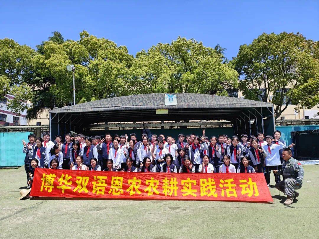 稻田里听蛙声阵阵,黎明中听晨鸡报晓,田园风光怡人处,见博华学子意气风发,躬身实践。