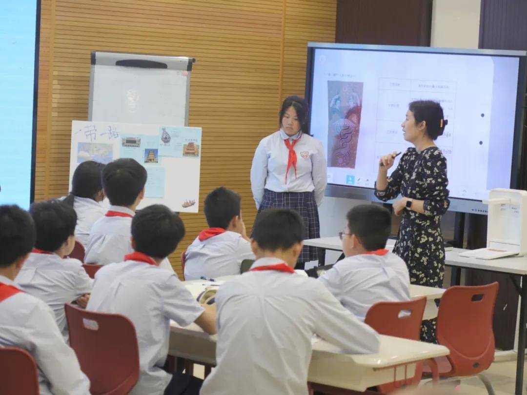 这节课中可以明显的看到张悦老师的评价意识。在布置完主线任务“制作“一带一路”上的中国名片”后,张悦老师先展示了一张七1班学生做的展板,并让4班学生提提意见,不仅使学生明确的学习任务,也激发了学生想更好的完成任务的意愿。另外,在每个讲故事的环节,张悦老师都设计了一份评价量表,学生展示学习成果讲历史故事之后,张悦老师都会邀请其他组的成员进行评价,可以看见学生在对他人进行评价时真正使用了评价量表,并使用评价量表促使自己的学习成果展示更好一些。课堂问答环节,张悦老师也很注意使用语言激励评价,比如当学生精确说出历史人物、事件对当代中国发展的意义时,张老师会及时总结并表扬学生。