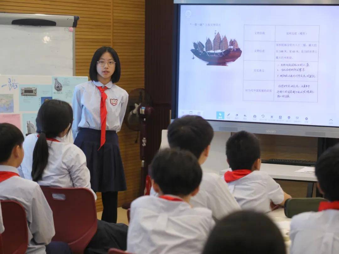 第三个环节是研读史料制作文物名片。这一环节将文物信息和文献史料给学生,学生提取历史意义谈谈对当代中国发展的启示。但是要想达到历史课的厚重,还应该提供更多的资料,尤其是不同维度的资料,比如数据,国内国外贸易比重等,这样才能更好的感受到张骞通西域的艰难;郑和下西洋的宝船一艘就要耗费白银几十万两,大小船只200多艘,由此让学生去感受明朝的强大。