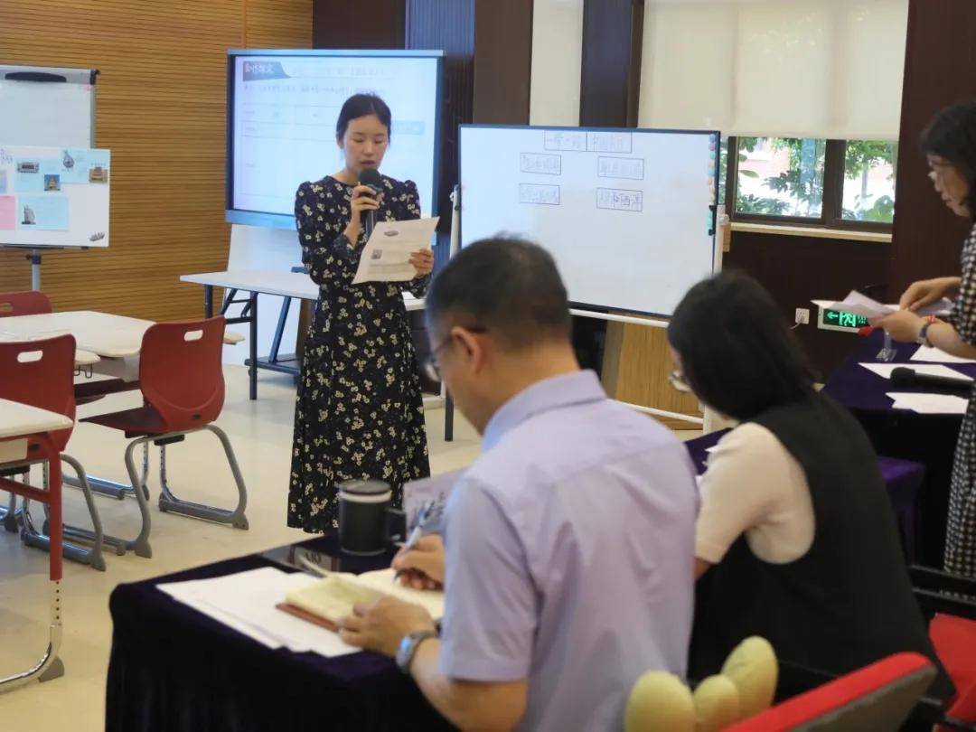 本堂课针对教改主题设计了三个评价任务,三个评价任务都以小组合作的方式展开,张老师能注重小组的反馈和展示,基本做到有活动即有反馈和展示,有反馈和展示即有师生的点评,张老师能对进行展示的学生进行用词和姿态的指导,以帮助学生今后进行更好地展示;在师生互动环节中,张老师比较有耐心,能给学生以时间进行思考和解释,这些都是值得肯定的地方。