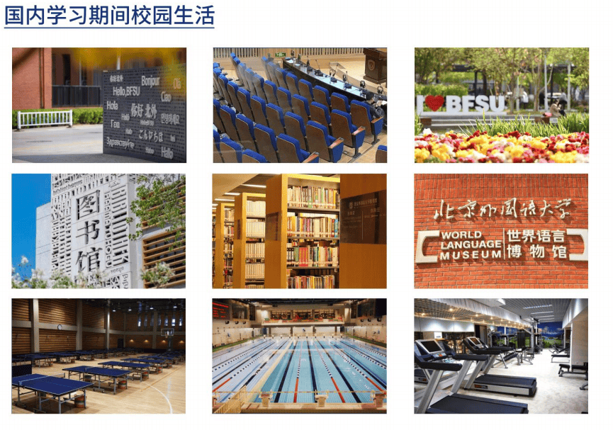 学生在国内完成委托培养课程期间,学习和生活在北京外国语大学内,大学坐落于北京市海淀区西三环,属于北京高校云集的核心区域。